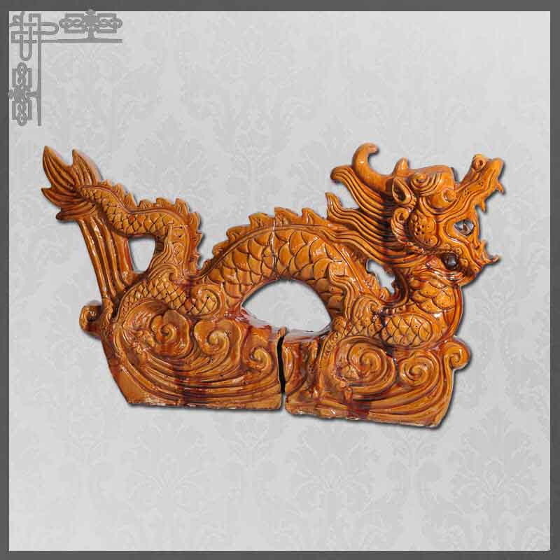 : 龍是中國所敬奉的圖騰,是吉祥雄偉的象征。,所以它不僅是中國封建社會的皇帝的象征,而且權威和尊嚴。主要放在屋脊中間位置,起到裝飾功能。